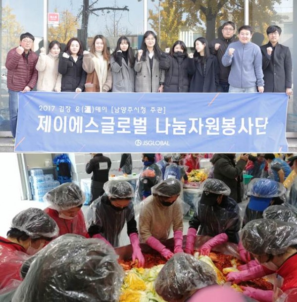 제이에스글로벌은 14일 남양주시 희망케어센터와 함께 '2017 김장 온 데이 행사'를 열었다.