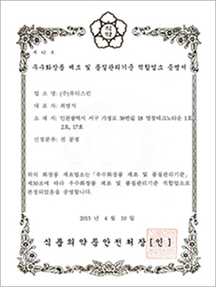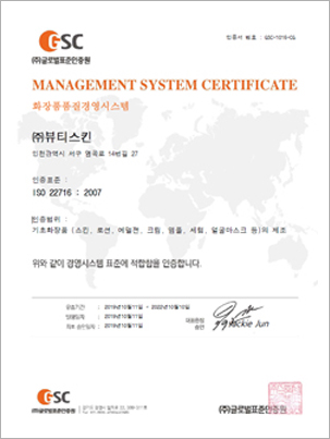 BEAUTYSKIN有限公司在2015年获得食品医药品安全局CGMP合格企业认证(整体流程),